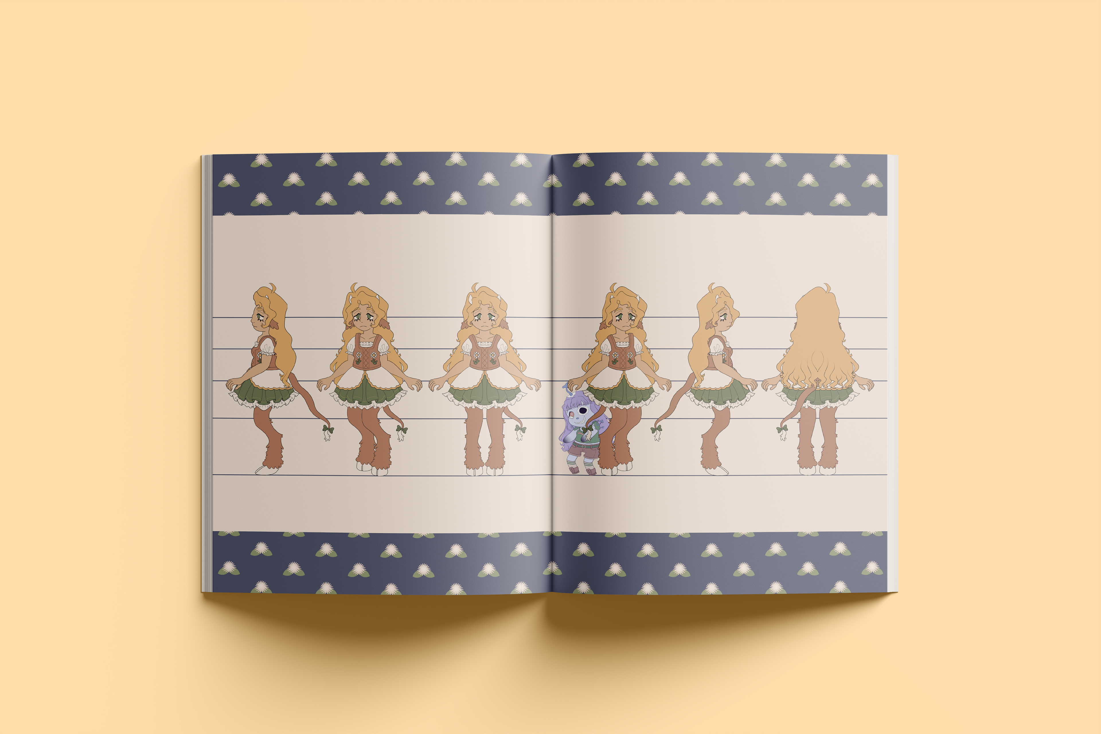 For my thesis project, I combined my love for storytelling and character design with the skills I learned throughout my Graphic Design major and Creative Writing and Publishing minor. I worked closely alongside my thesis advisor, Nancy Mata, throughout the creative process to receive critiques and improve my project. The process of different brainstorming stages, sketching, illustrating, writing, designing, and assembly took two semesters to complete. My work culminated in a hand-crafted zine prototype along with a magnetic paper doll of the blonde character Delilah. As a mental health advocate, these character designs and development are also deeply tied to mental illness so that people can find representation and relatability within the stories they consume.